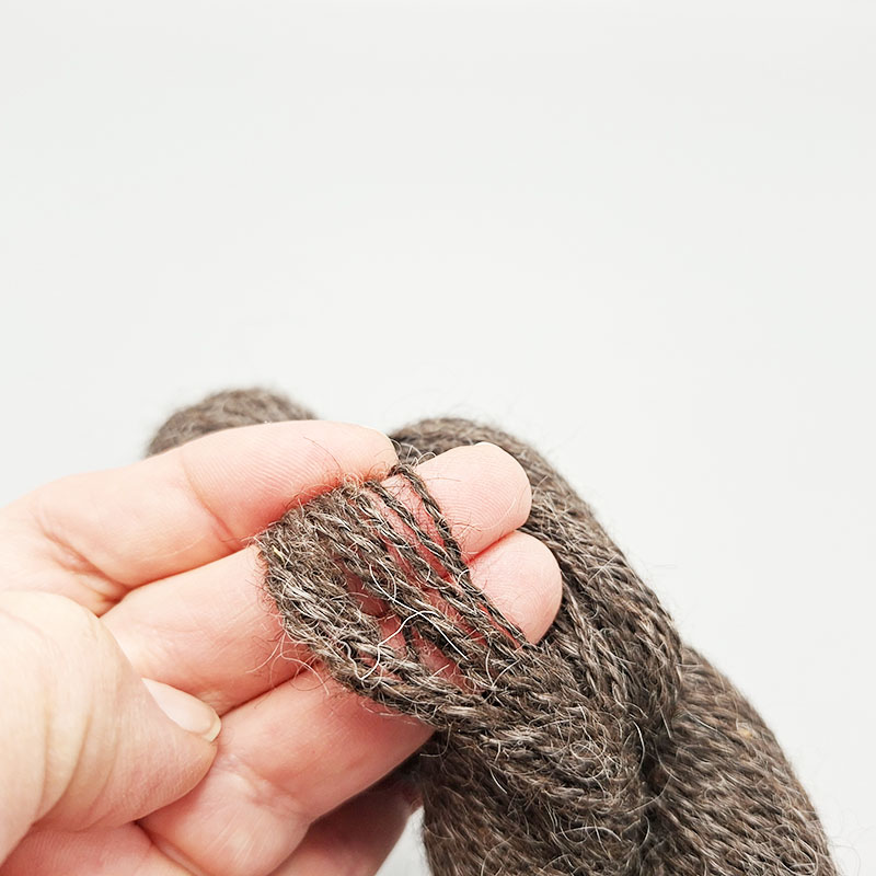 Svart gotlandsull, finull och korsningsull ger tillsammans en riktig glans på vårt Tjära-garn.