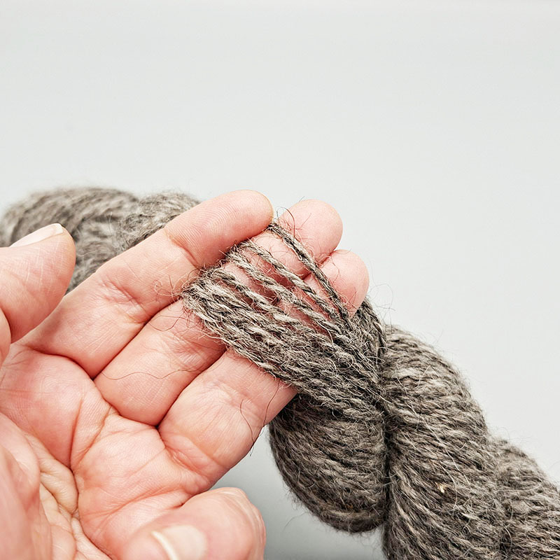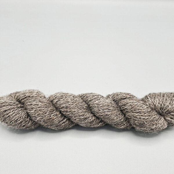 En av 11 allmogeraser i landet. Ullen är varierad, litet grövre och med rustik karaktär. Vi har sorterat ullen i olika nyanser för att få fram en skiftning i garnet, som ett silverblänk i det gråsvarta.